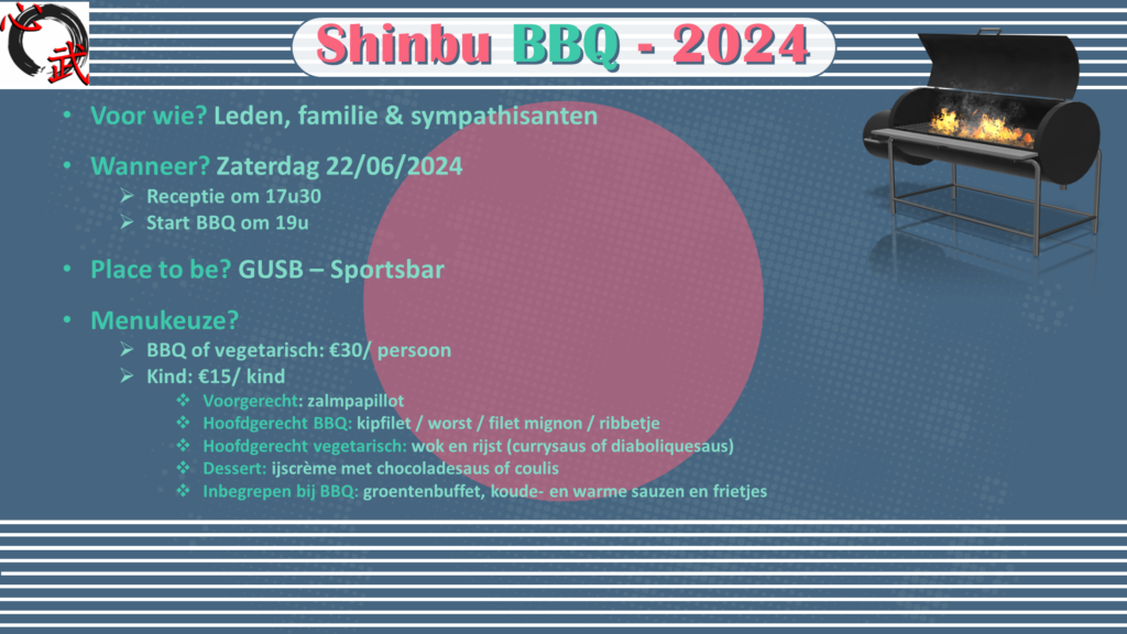 Beste karateka,Beste ouder, Omwille van de examens die gehouden worden in het GUSB wijken we met Shinbu even uit naar een andere locatie voor de trainingen op zaterdagochtend.Komende zaterdag (08/06/2024) zal iedereen (zowel jeugd als volwassenen) tijdelijk trainen in de sporthal van de Artevelde Hogeschool, die naast het GUSB ligt. Slechts op de volgende data […]