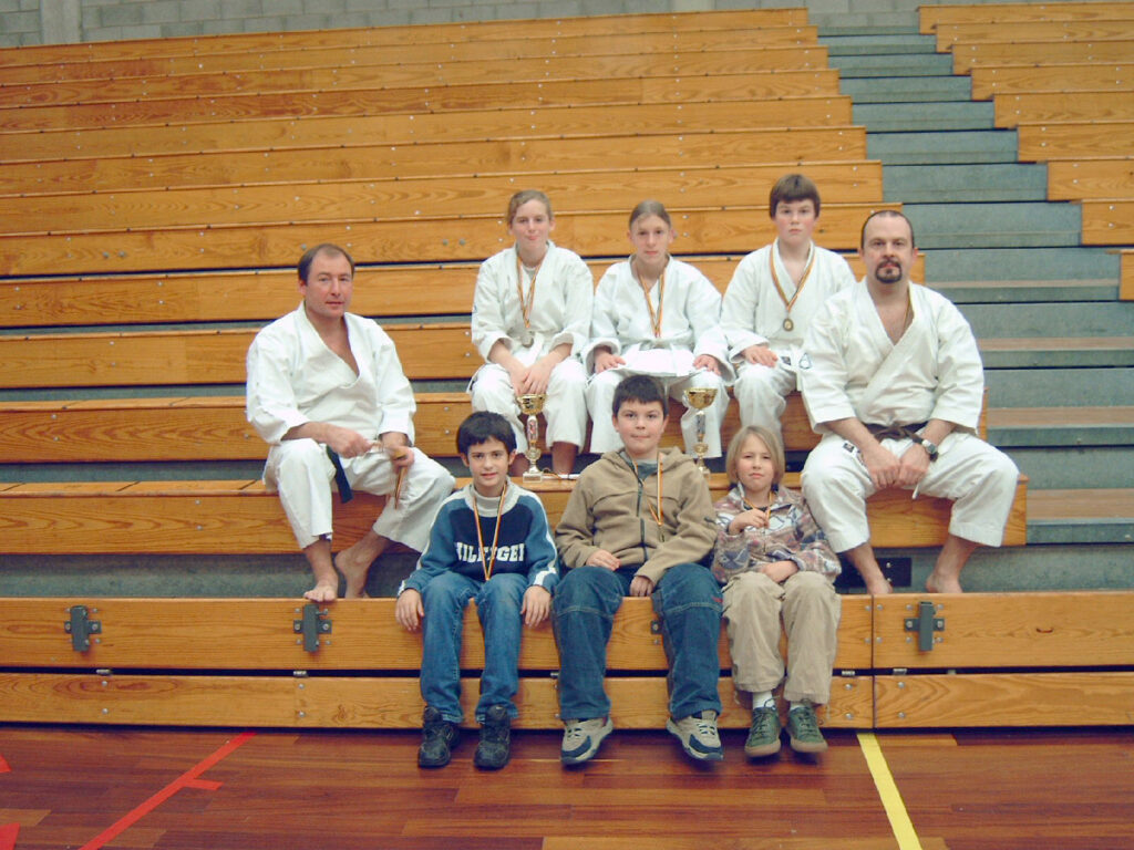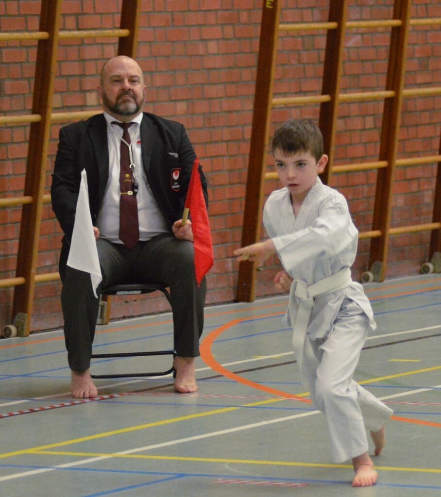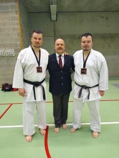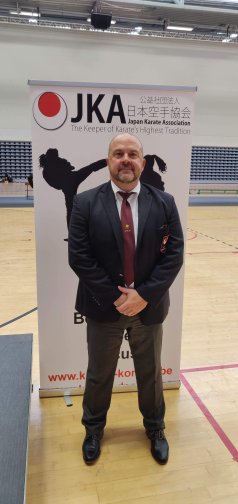 Niet alleen als karateka heeft hij al wat jaren achter de teller, ook als scheidsrechter kan hij terugblikken op enige ervaring. Streng maar rechtvaardig, als lesgever en als scheidsrechter ![]()