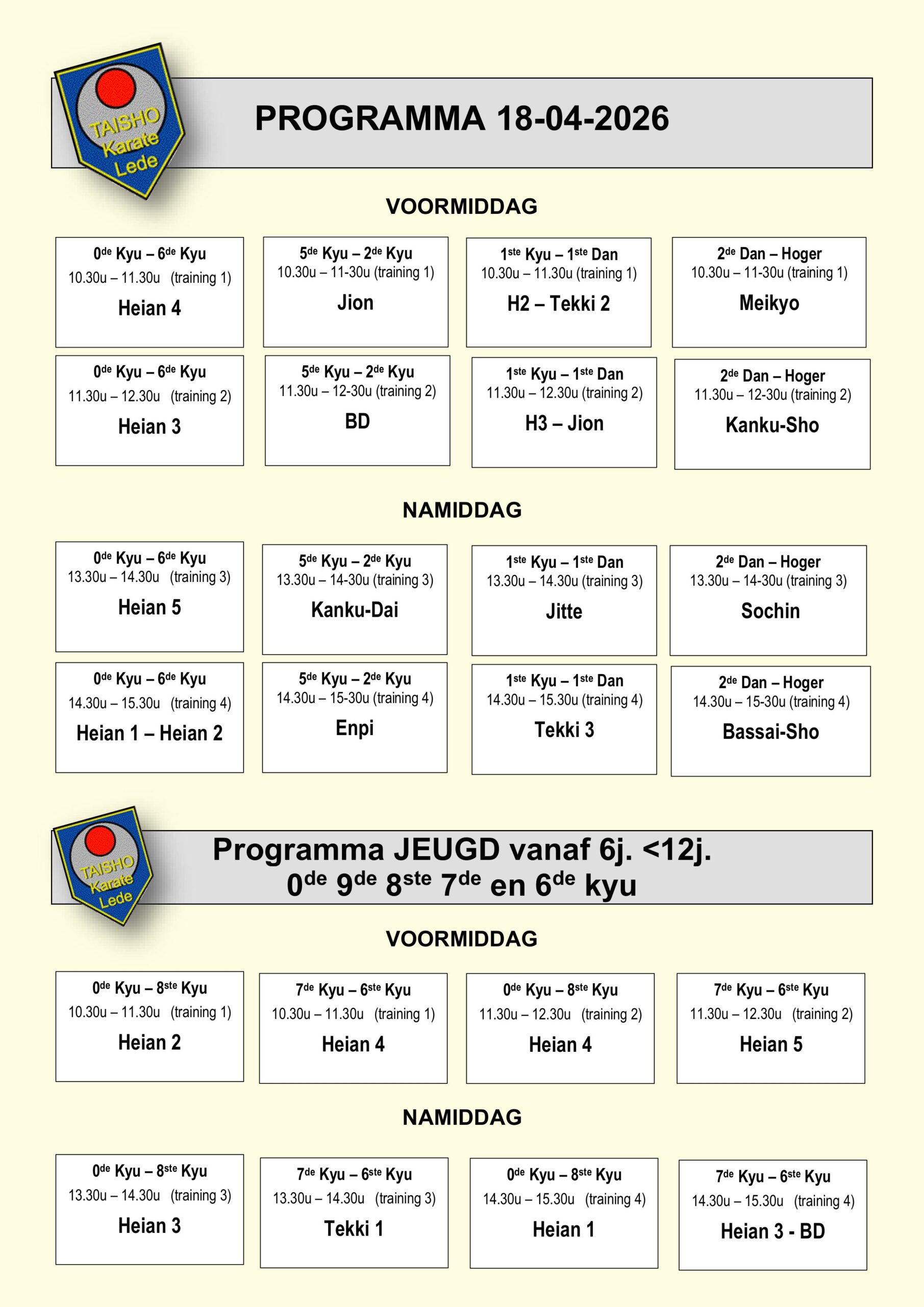 Op zaterdag 18/04/2026 gaat de jaarlijkse trainingsdag te Lede door! 🥋😀